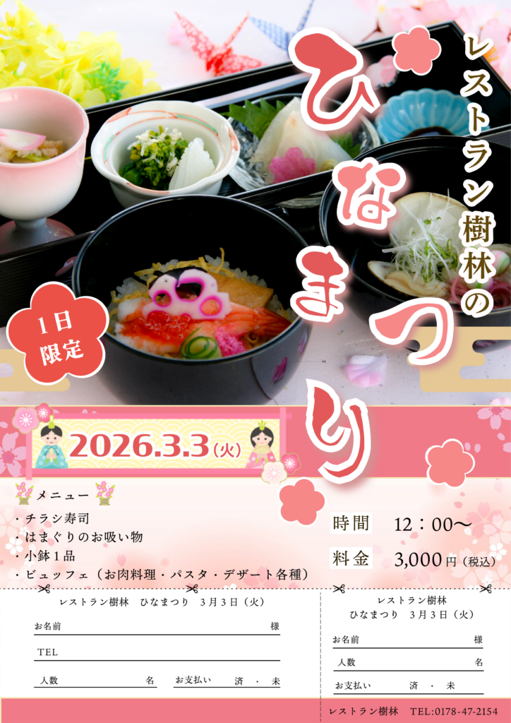 3月3日の桃の節句に合わせ、1日限りの特別メニューをご用意いたしました。