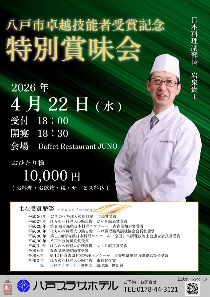受賞を記念し、一夜限りの特別賞味会を開催いたします。