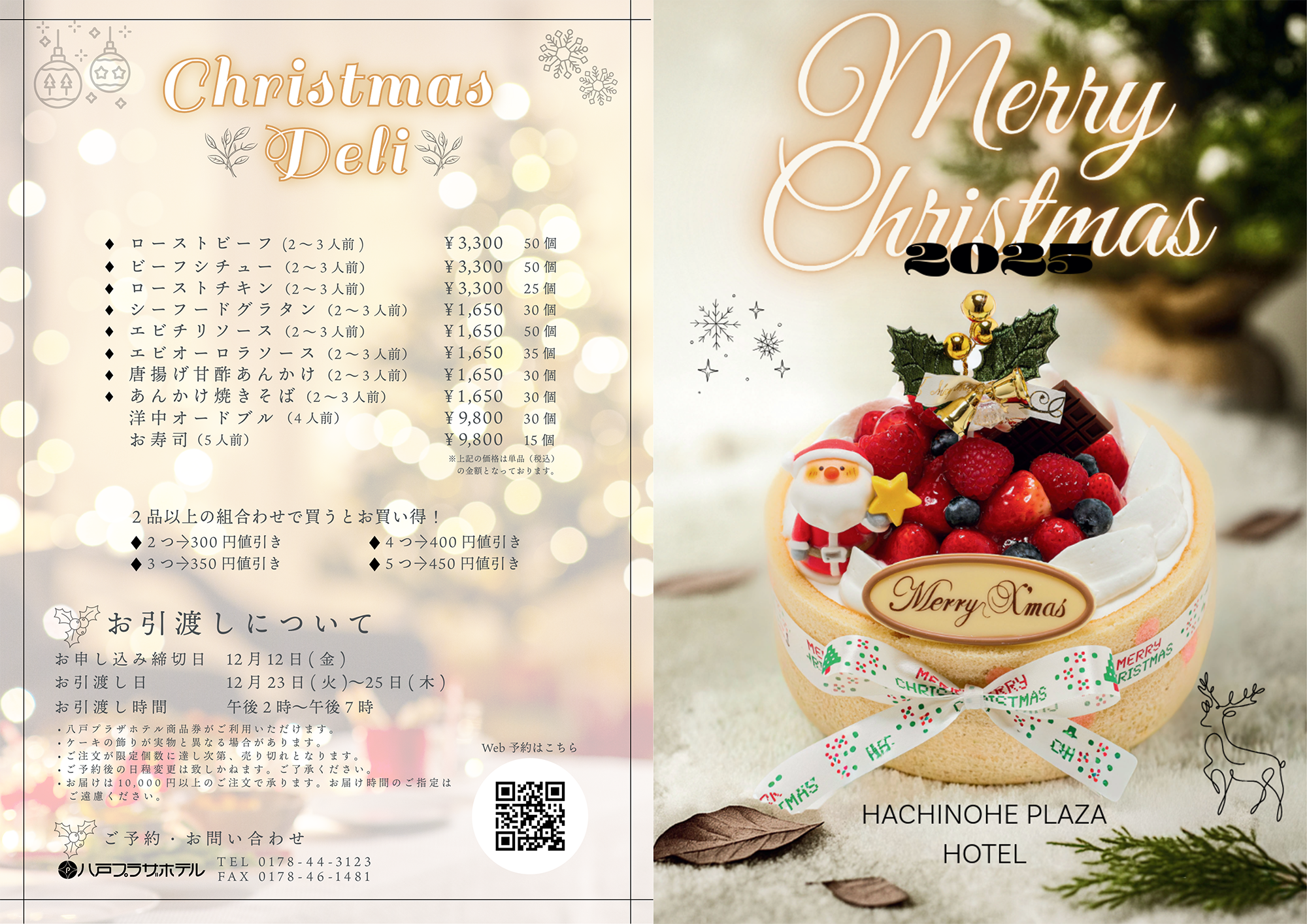 今年のクリスマスは是非、八戸プラザホテルのクリスマスケーキで楽しいクリスマスをお過ごしください。